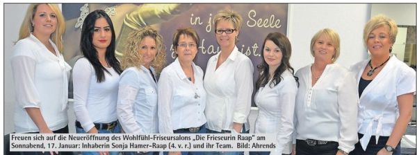 Ob fetziger Kurzhaarschnitt, elegante Hochsteckfrisur oder trendige Farbe: Wenn es um Haare und Frisuren geht, sind die Kunden hier genau richtig. Inhaberin Sonja Hamer-Raap hat das Handwerk im Blut. Als Tochter von Lothar Raap, ehemaliger Inhaber des Traditionssalons „Raap - Der Friseur” in der Auricher Innenstadt, hat sie den Friseurberuf von der Pike auf gelernt. Seit mehr als 25 Jahren beweist die Friseurmeisterin, dass Frisuren, Haarschnitte und Färbetechniken ihr Leben sind .